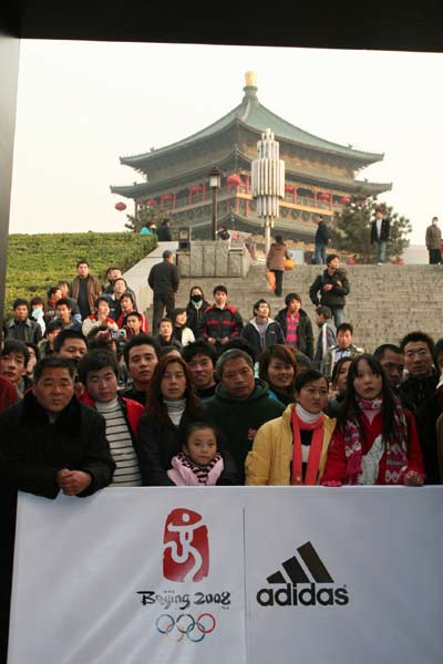 本次“人文奧運·旅游西安”系列活動啟動儀式暨“鐘鳴盛世·新年祈福”活動是市委市政府為迎接北京2008年奧運會而開展的大型活動,表達了西安人民參與奧運、支持奧運、奉獻奧運的無限熱情將伴隨瑞祥的永寧鐘聲變成真誠的福祉祈愿,為所有華夏兒女祈福。祈奧運盛會、五洲同慶之福,祈國運昌盛、社會和諧之福,祈城市發展、經濟繁榮之福,祈民生康泰、安居樂業之福。而阿迪達斯則讓西安人民用奧運體驗的方式,好好的體會到了奧運年來臨的不一樣的喜氣。