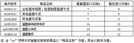 三、繼續(xù)保持對部分半成品革進(jìn)口關(guān)稅暫時下調(diào)2個百分點