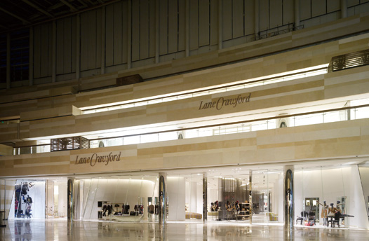 一座16米高的龐大多媒體幕墻跨越新店的三層空間,除了連續(xù)播放米蘭和巴黎的時裝展盛況,也同時展示連卡佛特別授權(quán)制作的藝術(shù)品和影像資料,極具觀賞性和沖擊力。