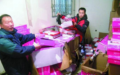 業(yè)戶們七嘴八舌向記者介紹了這里的情況。他們都是附近一家大型鞋城的業(yè)戶,在這里有三處地下室被當作存放鞋的倉庫。今日凌晨,其中一個地下室的供暖管線突然發(fā)生爆裂,大量暖氣熱水傾泄進地下室?guī)旆績?nèi),積水在一個地下庫房內(nèi)蔓延后,還向臨近的兩個大型庫房蔓延。在大家發(fā)現(xiàn)這里的情況后,立即找供熱部門來處理,跑水現(xiàn)象被控制住,但是這些貨物卻成了“水貨”。大家從清早一直忙碌到上午只搶運出其中一少部分。業(yè)戶們說,三個倉庫里存的鞋將近10萬雙,水淹造成的損失一時還無法統(tǒng)計。
