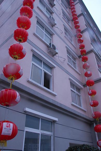 圖為奧康員工自發地在宿舍陽臺上掛起春節的大紅燈籠