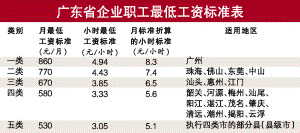 廣東省企業職工最低工資標準表