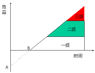 銷售人員剛跨出校門或剛進(jìn)公司,處于圖上的A點(diǎn),對(duì)公司的貢獻(xiàn)是負(fù)值。經(jīng)過一段時(shí)間學(xué)習(xí),到達(dá)B點(diǎn),開始產(chǎn)生正效益。