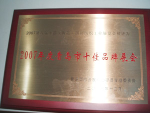 據悉,本次評選主旨為培育我市品牌展會,促進我市會展業全面健康發展。“十佳品牌展會”是指展會連續舉辦3年以上、規模為500個展位以上或展覽面積10000㎡以上且保持增長發展趨勢、展商滿意率70%以上、采購商的邀請及組織管理工作有序的展覽會。2007第八屆中國(青島)國際紡織工業展覽會、2007第八屆中國(青島)國際縫制設備展覽會的成功舉辦,獲得了評選委員會的高度評價和認可,一舉捧回兩塊獎牌。