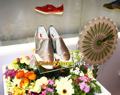 香港明星宣萱也應邀前來,穿著ECCO Summer Zone夏日地帶系列休閑鞋傾情演繹,優雅的氣質與ECCO愛步舒適時尚的品牌特質天衣無縫完美契合。眾多身著明亮春夏休閑裝的模特們踏著輕盈的腳步款款走來,將ECCO愛步舒適、時尚、優雅的感覺演繹得淋漓盡致。ECCO愛步中國區總經理George Kahwati柯喬治先生向宣萱小姐贈送了ECCO Nicolai Bergmann特別版女鞋。此款是ECCO愛步攜手國際花藝設計師Nicolai Bergmann以ECCO愛步的發源地以及Nicolai的故鄉丹麥國旗的紅色為主色,配上銀色波斯菊圖案設計推出的特別版女鞋。