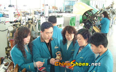 近年來,金猴集團注重技術(shù)研發(fā),建立了省級技術(shù)開發(fā)中心,形成了一支100多人組成的專職技術(shù)創(chuàng)新隊伍,年可開發(fā)設(shè)計新產(chǎn)品2000多個,每天都有新品投產(chǎn),產(chǎn)品出口到俄羅斯、韓國、德國、美國等14個國家,成為中國真皮領(lǐng)先鞋王。這是3月24日,技術(shù)人員在試制車間研究新品。