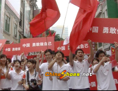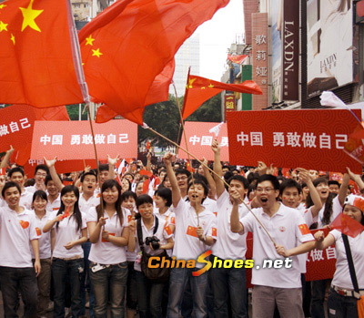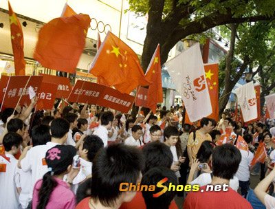 白云國際會議中心,白云山,陳家祠,中山紀(jì)念堂,北京路步行街……數(shù)以萬計的廣州市民涌向這些地方,揮舞著旗幟,綻放著笑容,“加油北京!祝福奧運!”“中國 勇敢做自己”,他們嘴里不停地喊著,嗓子有些嘶啞,卻匯成一股巨大的聲浪,響得人耳畔發(fā)燙。