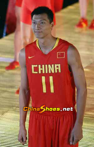 5月12日,中國男籃隊(duì)員易建聯(lián)在展示新的比賽服裝。當(dāng)日,代表中國出戰(zhàn)的22支運(yùn)動(dòng)隊(duì)奧運(yùn)比賽服裝和裝備在太廟正式亮相。