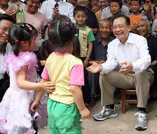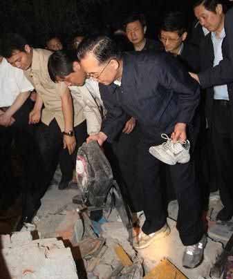 2008年5月12日14時28分,四川汶川發生里氏8級地震。截至18日14時汶川地震32477人遇難220109人受傷。近年來屢屢出現在抗災救險第一線的溫家寶總理,這一次仍是在第一時間趕到了災區。在隨后的88個小時里,他冒著余震和風雨奔走于四川的各個災區,他爬上破損的建筑,滿含熱淚地安撫流淚的孩子,手拿擴音器高聲慰問,劃破手臂也不顧,甚至乘坐軍用飛機飛往此次大地震的震中汶川……再次展現了其“平民總理”的風范。
