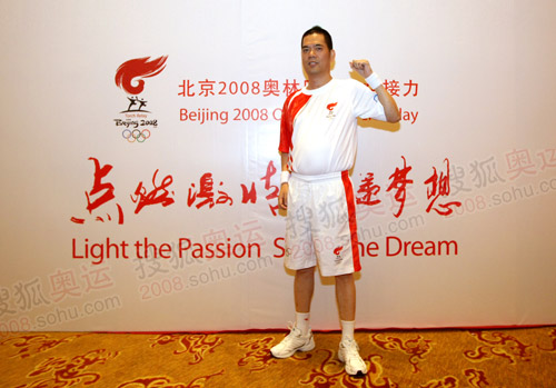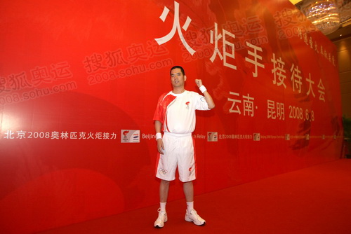 奧運(yùn)火炬手丁伍號單拳緊握演練愛心手勢