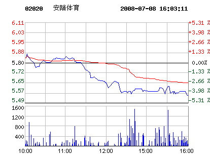 安踏體育7月8日股票行情走勢