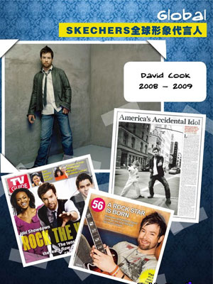 連同著名的女歌手Spears、Aguilera、Underwood 和Simpson,男明星 Rob Lowe、Matt Dillon,前湖人隊球員Rick Fox 和 Downey Jr.一起,David Cook將會出現在SKECHERS的全球市場推廣計劃當中。
