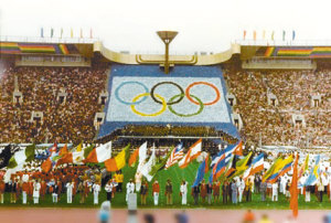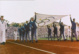 南半球國家第一次承辦的奧運會,最令人難忘的場面是民主德國和聯(lián)邦德國聯(lián)合參賽,他們在《歡樂頌》的伴奏下,使用有五環(huán)標(biāo)志的黑、紅、黃三色旗為團旗共同入場。體育超脫了政治的束縛,被還原成人和人之間的交流方式。