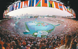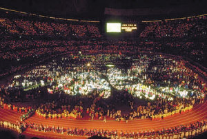 洛杉磯奧運會的最偉大之處在于貢獻了大型體育賽事的商業(yè)運營模式,它讓現(xiàn)代奧運會從此走出資金困境。開幕式表演由好萊塢著名導(dǎo)演戴·沃爾帕主持。點燃主火炬的創(chuàng)意令人驚喜:一個“太空人”“飛”過體育場,然后點燃五環(huán)形狀的引火裝置。