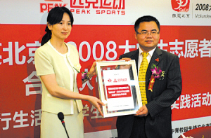 “我會去看奧運,屆時,看到奧運場外密密麻麻的奧運會志愿者,我的心情絕對會非常興奮,因為有4萬名志愿者將穿著清一色的印有匹克標志的服裝,那才是我們奧運營銷的重點。”許志華高興地向記者說道,匹克鮮紅的LOGO也將同北京奧運會一樣烙印在人們心中。