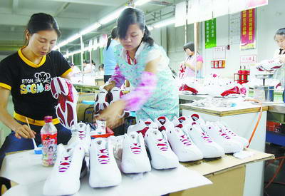 匹克公司的運動鞋生產線。(林世澤 攝)