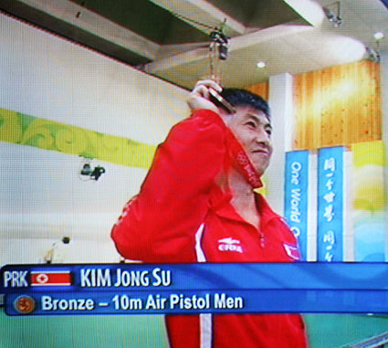 在8月9日下午的男子十米氣手槍比賽中,鴻星爾克全力贊助的朝鮮奧運軍團選手金鐘秀不負眾望,為朝鮮隊奪得一枚銅牌,中國選手龐偉獲得該項目的金牌。這是朝鮮隊在北京奧運會上獲得的首枚獎牌,也是中國品牌第一次登上北京奧運會的領獎臺。