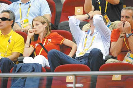 8月9日,西班牙王儲和王妃觀看女子籃球西班牙隊與中國隊的比賽。CFP供圖