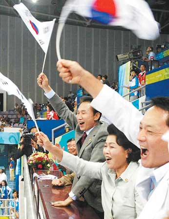 于是,一貫在意形象的韓國總統李明博,也帶上夫人,悄悄跑到手球比賽現場,搖著小旗子為自己國家的隊員喊加油。甚至在回國后,一聽說本國運動員拿了金牌,他干脆中斷會議,撥通隊員手機,好好夸上一番。