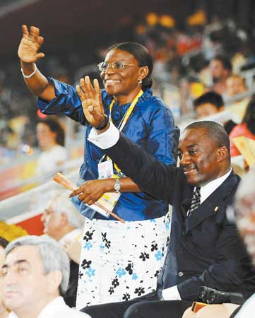 8月8日,剛果(金)總統卡比拉在北京奧運會開幕式上向運動員致意。黃敬文攝