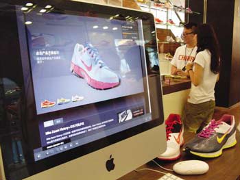 在三里屯、王府井一帶的阿迪達斯、耐克等大牌運動品牌旗艦店中,定制鞋區域格外擁擠。在新東安市場的某品牌旗艦店,定制區放置了好幾臺電腦,顧客可以從中挑選款型,并重新決定細節變化、顏色搭配,也可以自己重新設計。