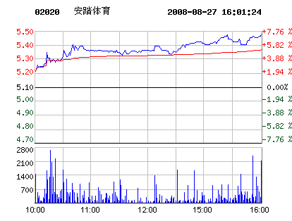 鞋企股價:8月27日安踏體育股票行情走勢