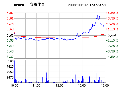 鞋企股價:09月02日安踏體育股票行情走勢