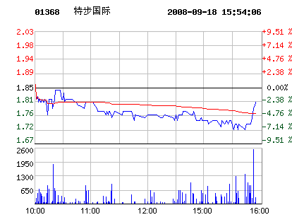 鞋企股價:9月18日特步國際股票行情走勢