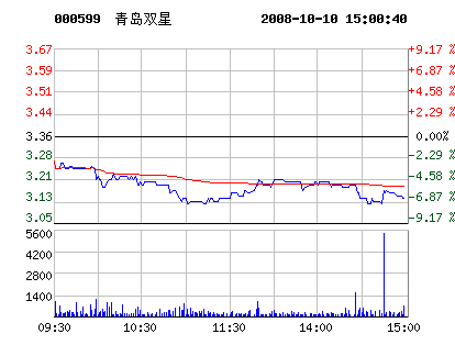昨收:3.36 今開:3.25 成交:44,516 最高:3.25 最低:3.08 均價:3.14 市盈率:15.50 流通:3.71億 市值:16.27億元 換手:1.20% |