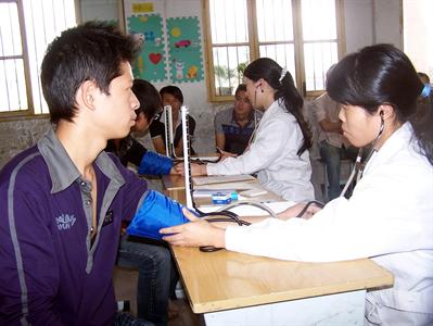 視力標準放寬,戴眼鏡的大專學生初檢合格,正在接受血液檢測。