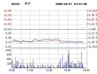 10月27日李寧股票行情走勢
