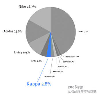 事實上,2007年卡帕的市場份額就從不到2.8%飆升至4%,耐克和阿迪達斯則分別從16.7% 跌至14% ,15.6% 跌至 12%3。