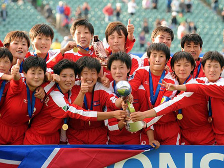 11月8日,朝鮮女足再次展現了強大實力,4:0輕取丹麥隊,成功打進四強。11月13日,朝鮮女足以2:1輕取英格蘭隊晉級決賽。最后的決賽,吸引了16162名觀眾到場觀看,這也是首屆女足世少賽開賽以來到場觀眾人數最多的一場比賽。在全場比賽中,朝鮮隊占據著絕對的優勢,全場射門達到31次之多,幾乎是美國的的兩倍。雖然先失一球給朝鮮對造成了極大的被動,但朝鮮隊員始終沒有放棄,憑借著對“TO BE No.1”的追求,在比賽的第77分鐘,朝鮮隊替補上場的球員李云愛在30碼外的任意球擊中橫梁,隨后跟進的金云香將比分扳平。最后,憑借著補時階段的進球,最終以2比1擊敗美國隊,捧起首座女足世少賽的冠軍獎杯。