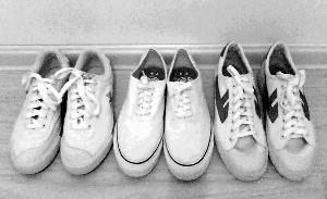 這是上世紀(jì)80年代初的一幕,從上世紀(jì)的70年代到80年代初,球鞋一直是“飛躍”、“回力”和“雙錢”的天下,一位現(xiàn)在還在堅(jiān)持穿飛躍球鞋的老人回憶,80年代初穿飛躍球鞋就是貴族,每天把鞋擦得很白,一點(diǎn)塵都不沾,這種愛干凈甚至被認(rèn)為是“輕浮”。“一雙鞋能穿兩年,除了底兒有磨損,沒有任何污漬和壞的痕跡。”