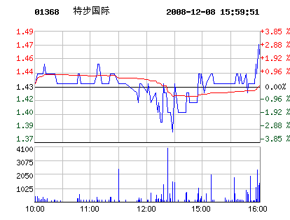鞋企股市:12月8日特步國際股票行情走勢