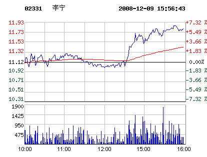 鞋企股市:12月9日李寧股票行情走勢(shì)