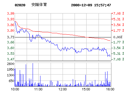 鞋企股市:12月9日安踏體育股票行情走勢