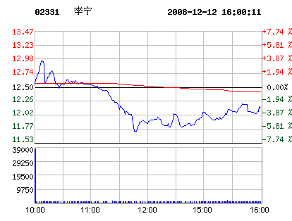 12月12日李寧股票行情走勢