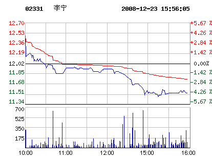 12月23日李寧股票行情走勢