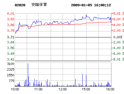 鞋企股市:1月5日安踏體育股票行情走勢
