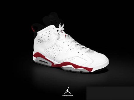 AJ 6于1991年發(fā)行,橡膠鞋舌是嶄新設計,保留透明底和鞋扣的特點。其中 紅/白/黑 為最暢銷顏色。另外 白/紅/黑 也因為Slam dunk(櫻木花道穿著)效應而成為搶手貨。