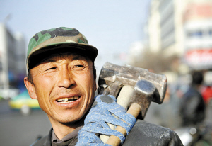 來自安徽池州的查光友胸前掛著一塊“我是電焊工”的紙牌,已在市場里游走了好幾天。他說:“擔心找不到工作,年初五就來了杭州,比去年提前了一個星期。去年在這里等了兩天就找到工作,但是今年直到現(xiàn)在還沒有工作。主要是待遇太低,去年電焊工每月3000元,今年連一半都不到。”