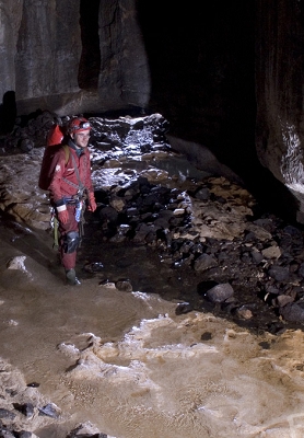 以馬丁·楊克為主角的照片共有三張。圖示這張的說明是:“馬丁·楊克身處Gouffre Raymonde洞穴的主要通道,這是通向法國比利牛斯山費利克斯·圖洛姆洞穴系統的諸多入口中的一個”。