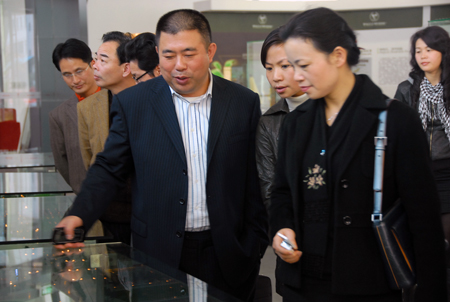 奧康甌北企業(yè)文化展示廳在布局上錯(cuò)綜有序。隨著解說(shuō)員的介紹,領(lǐng)導(dǎo)一行先后參觀了王總的傳奇經(jīng)歷、奧康的發(fā)展歷程,奧康的慈善工程、黨建工程,奧康的五大品牌及三大產(chǎn)業(yè)等。洞頭縣縣委書(shū)記胡劍謹(jǐn)對(duì)王總曾獲得“十大杰出青年”贊賞有加。