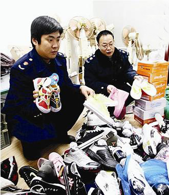 昨日,漢口漢正街第三工商所執法人員,根據舉報人白先生提供的“售假圖”,在浙江鞋城查處7家出售假冒名牌鞋的店鋪,收繳假名牌鞋200余雙。