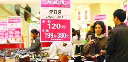 22日,在青島香港中路附近的一家商場內(nèi),不少商家將舊款的鞋子拿出來特價銷售,優(yōu)惠的價格讓不少市民駐足挑選。由于春季新款已經(jīng)開始陸續(xù)上市,原本柜臺上展示的舊款商品不得不降價促銷。