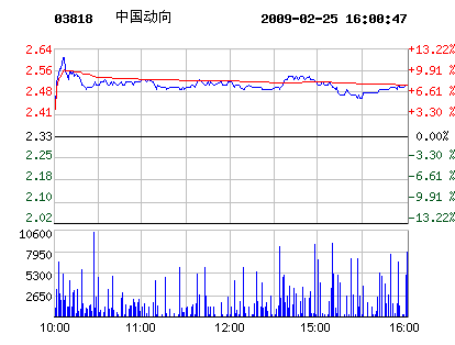 昨收:2.33 今開:2.40 成交:404,360 最高:2.61 最低:2.37 均價:2.49 流通:56.73億 市值:140.13億 換手:0.01% |
