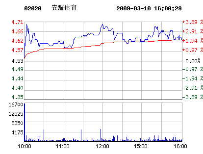 鞋企股市:3月10日安踏體育股票行情走勢
