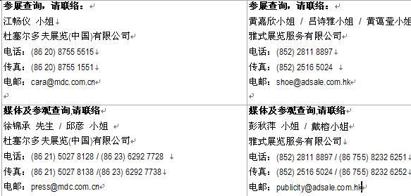 此外,在買家服務方面,展會主辦方還為買家提供了完善的商務配對服務,官方網站全天候接收海內外買家查詢,更設專人跟進。展會現場亦設有即時配對服務,買家只需指出有意采購的產品類別,大會即可按其需求尋找對口供貨商,安排會面。貴賓服務廊還提供一系列五星級服務,包括免費東莞酒店住宿一晚、翻譯服務、穿梭巴士等。