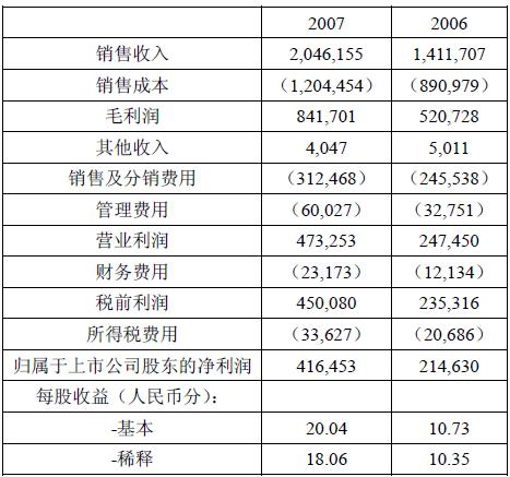 圖表 2006-2007財年鴻星爾克綜合損益表